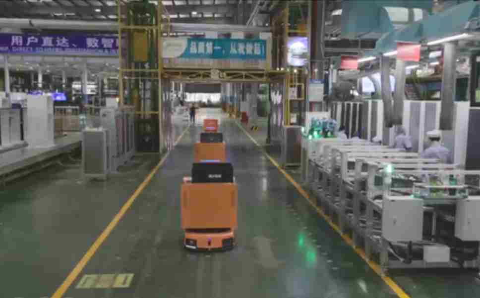 为车载冰箱物流配送打造的智能解决方案,,,包含产中物流通过潜伏举升AMR搬运至线边,,,产后成品物流智能仓储,,,流程包含产中物流智能齐套入库,,线边安灯叫料AMR智能配送至线边,,成品入库、、、出库,,通过无人堆高车机器人,,智能仓储管理替代人工作业管理,,,,实现更高存储、、更高效率、、、更具柔性化的解决方案。。。
